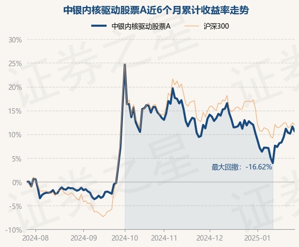 本站消息,1月27日,中银内核驱动股票A最新单位净值为0.5759元,累计净值为0.5759元,较前一交易日下跌0.86%。历史数据显示该基金近1个月下跌1.47%,近3个月下跌4.4%,近6个月上涨10.66%,近1年上涨2.97%。该基金近6个月的累计收益率走势如下图: